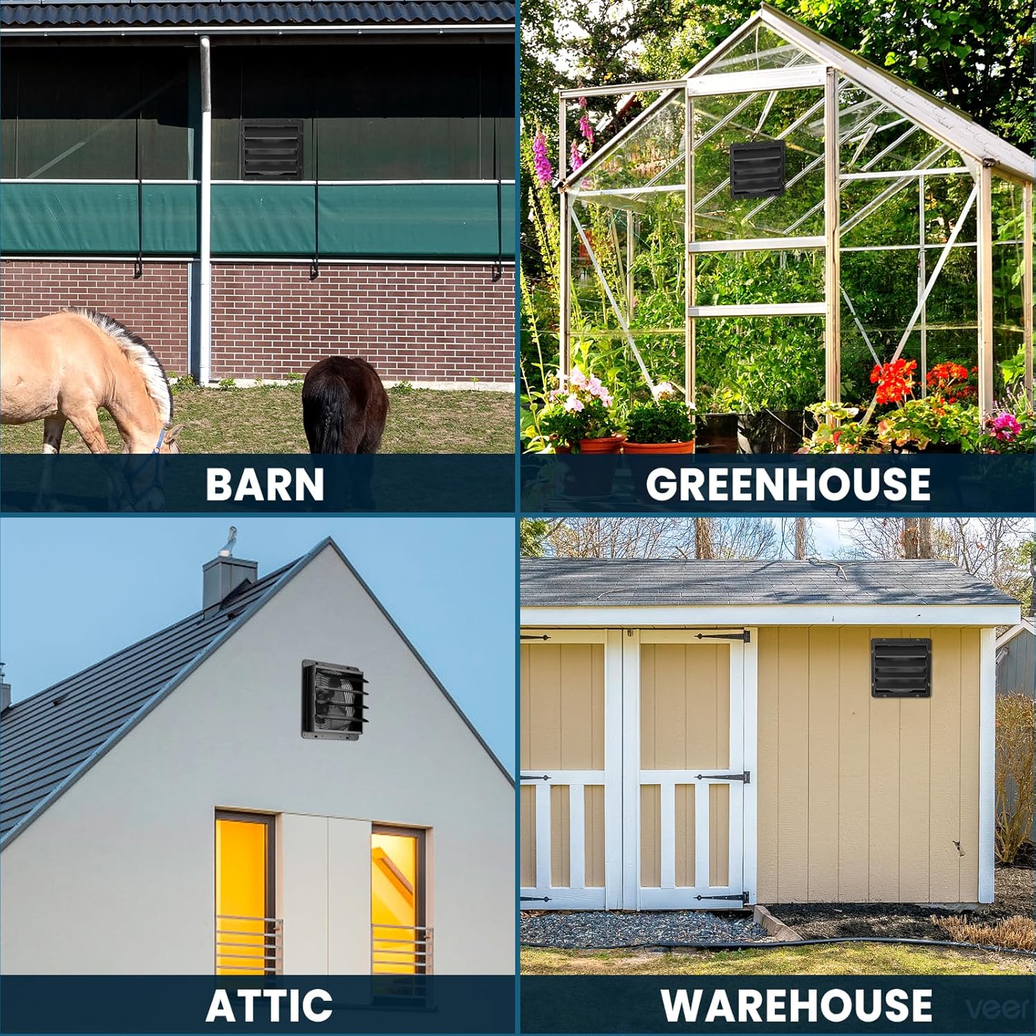 This versatile wall exhaust fan is suitable for a variety of spaces, including garages, workshops, chicken coops, attics, sheds, greenhouses, offices, hospitals, and theaters. Low-noise operation ensures comfort in both residential and commercial environments.