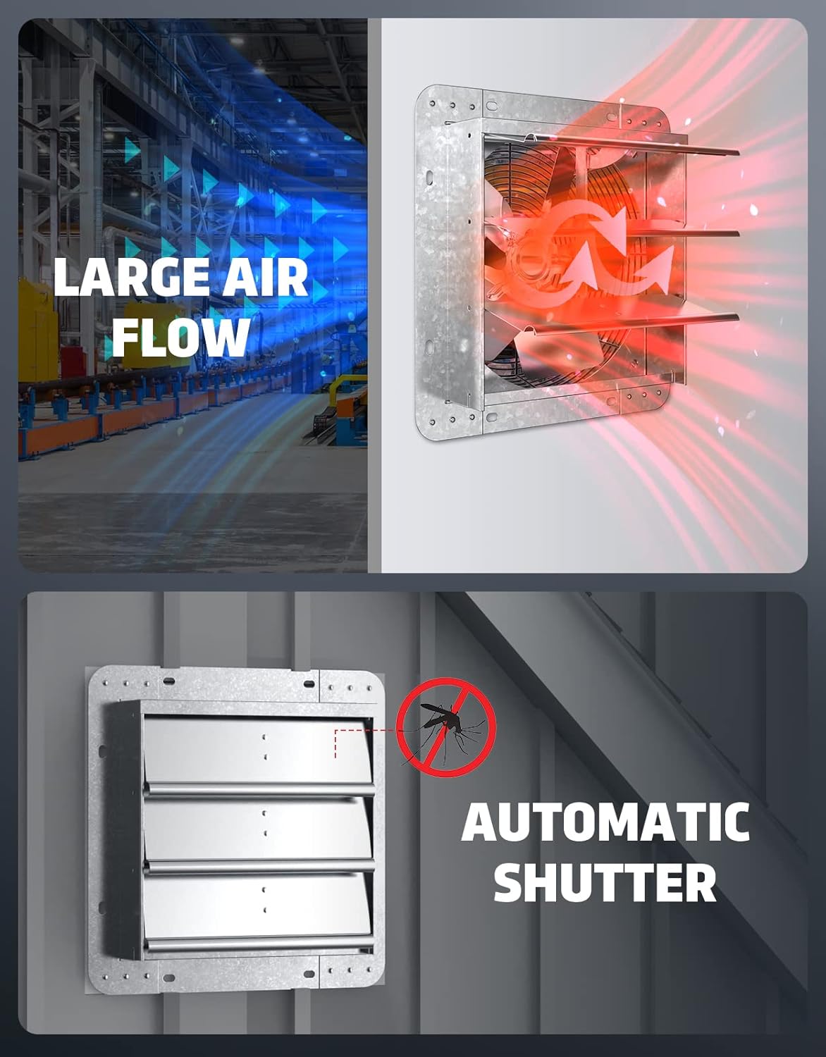 Reduce expensive cooling bills with this ready-to-install shutter exhaust fan. Designed to improve airflow and regulate temperature, it keeps your living space cooler and more comfortable year-round.