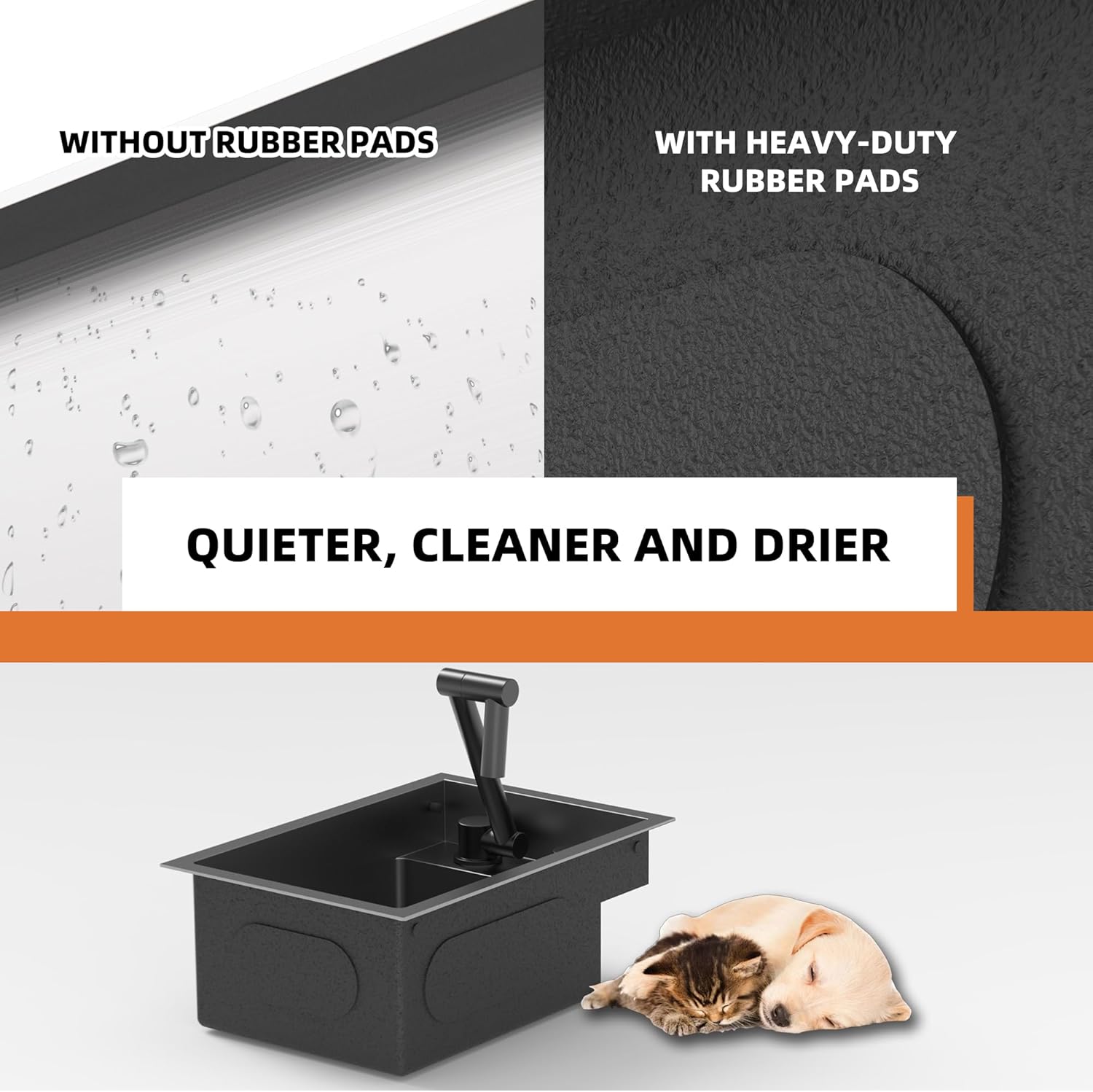 The 360° swivel folding faucet makes dishwashing, handwashing, and even pet care easy. Heavy-duty sound-dampening rubber pads reduce noise and condensation, protecting cabinets and improving your indoor environment. -