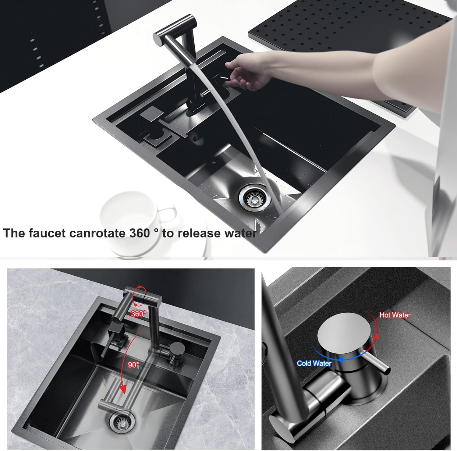 17.32x14.17x7.87-Inch Black Bar Kitchen Sink, Portable Single Bowl with Faucet and Stainless Steel Cover Plate