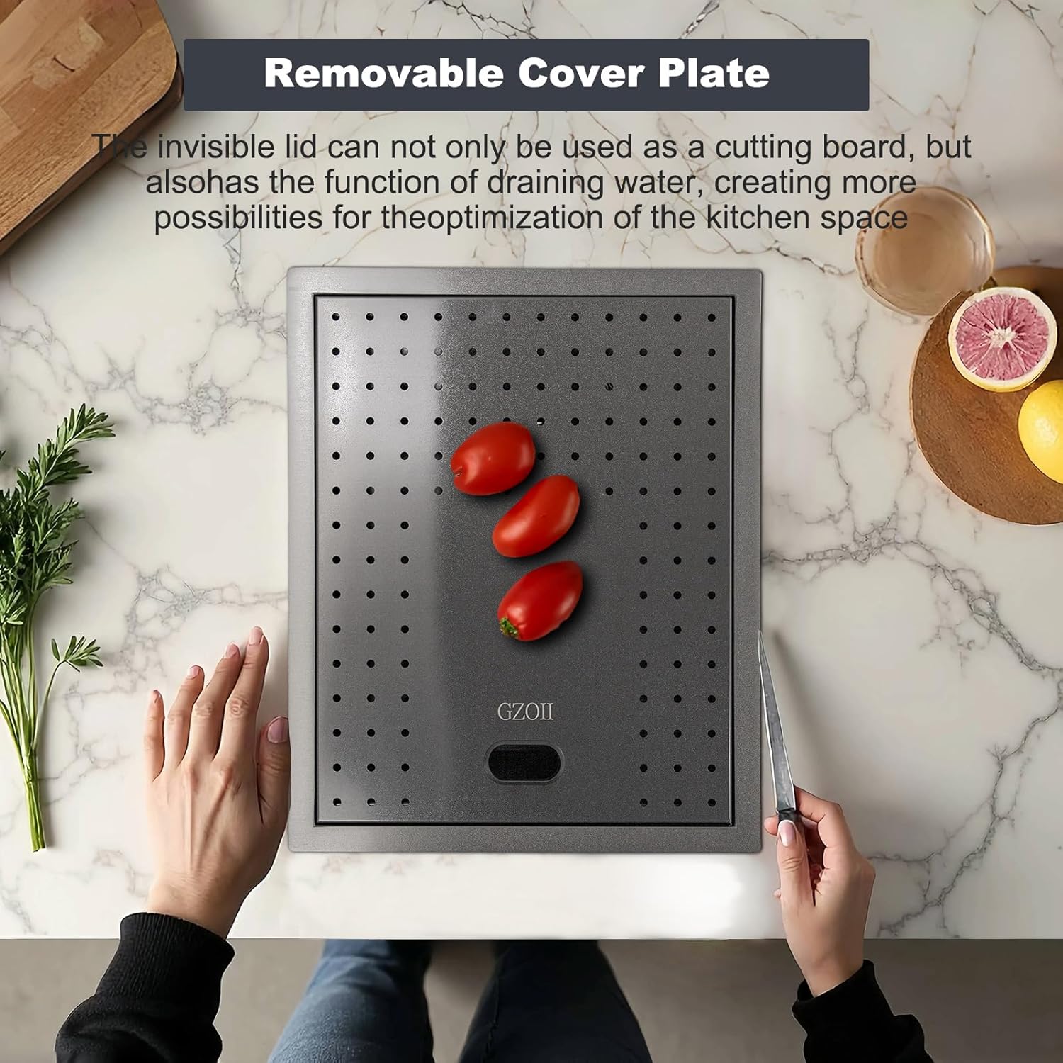 Space-Saving Lid Design – Features a cover plate with grooves and drainage holes that allow water to drain quickly. Close the lid and instantly convert the sink into a flat tabletop surface for extra workspace.