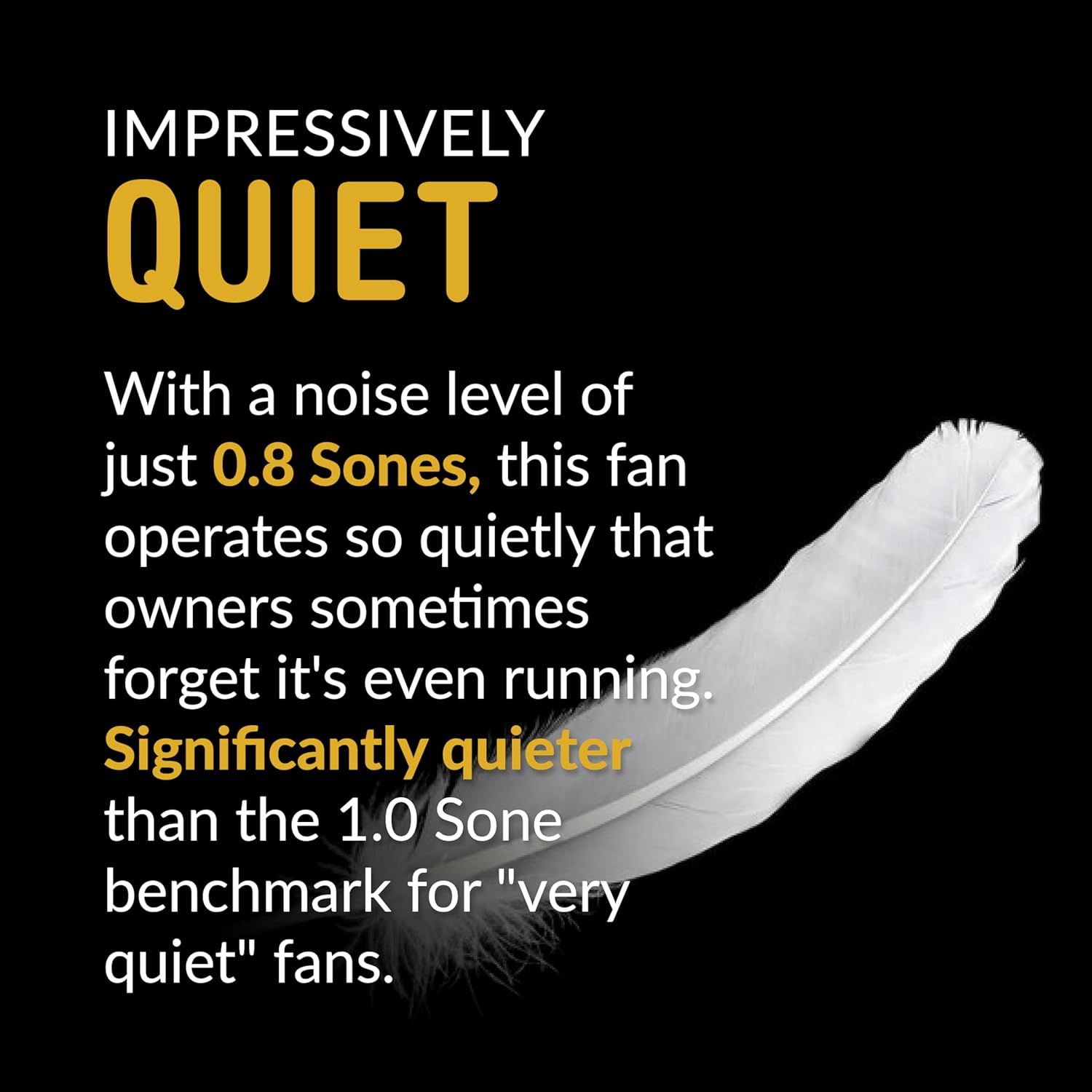 Operates at just 0.8 Sones, significantly below the industry benchmark of 1.0 Sone for “very quiet” fans—so quiet you may forget it’s running.