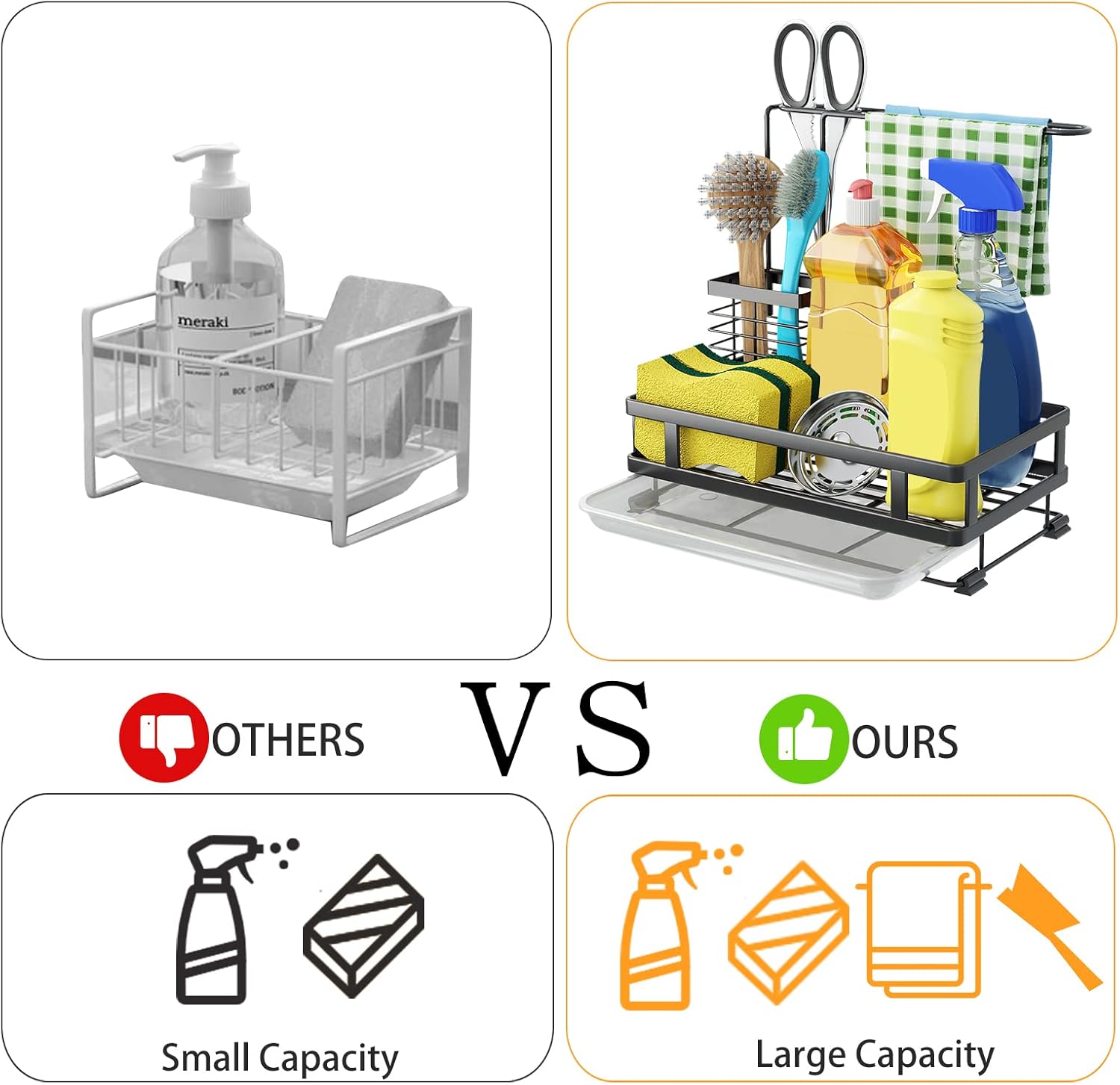 🧽 Spacious Storage – Large design (10.5" × 5.9" × 10.5") fits sponges, dish soap, hand soap, brushes, cloths, sink plugs & more.