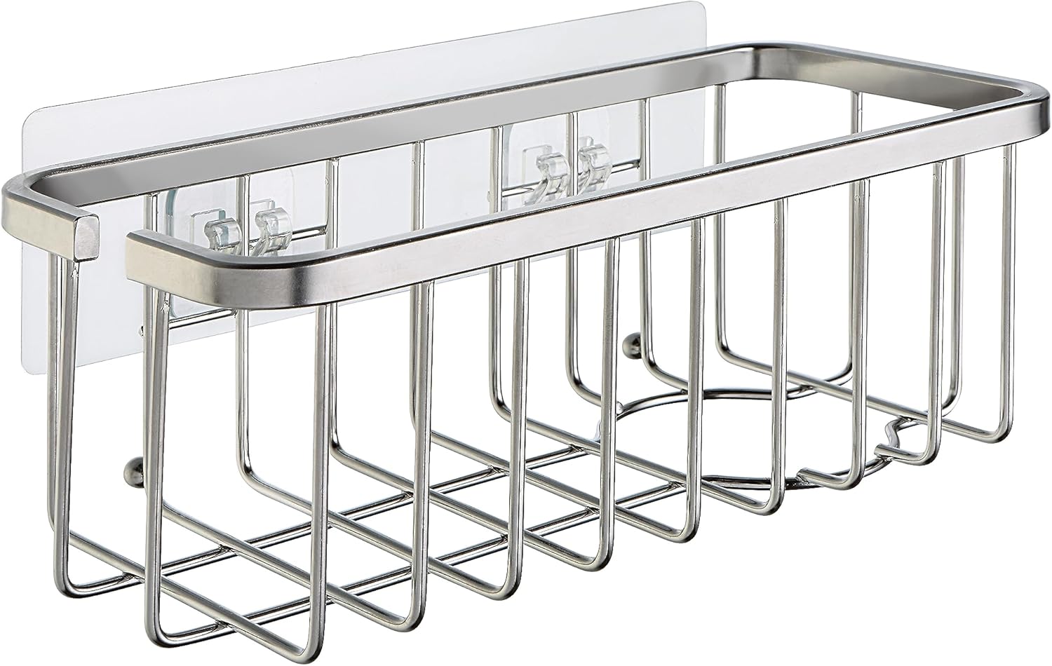 What’s Included – Package contains 1 stainless steel basket, 1 adhesive pad, and 2 suction cups. Sponges, brushes, and other items are shown for illustration only and are not included.