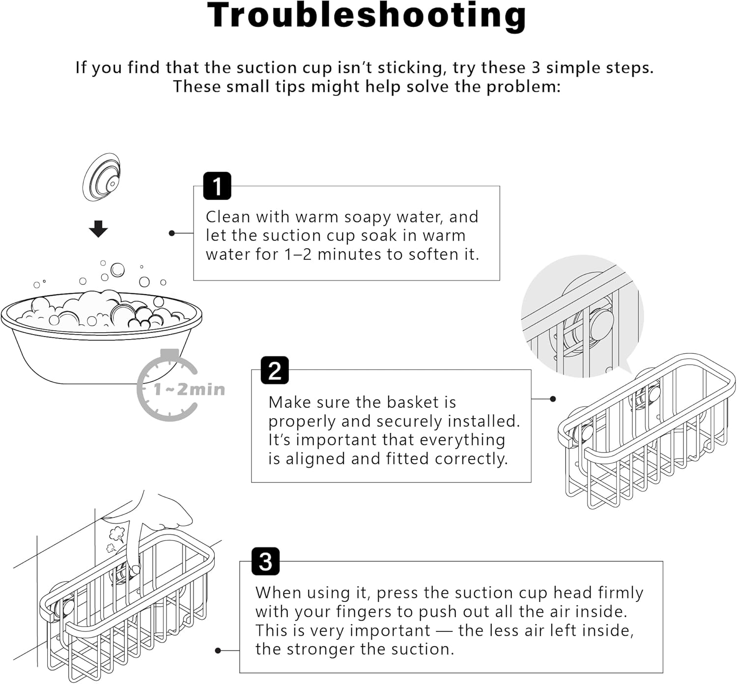 Stronger Suction Tips – If suction cups don’t stick properly, follow these steps: