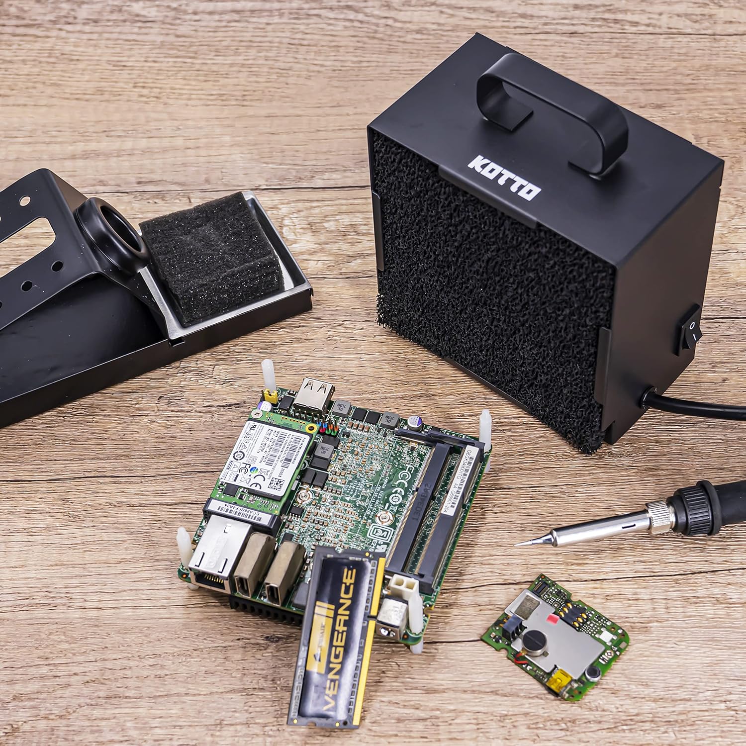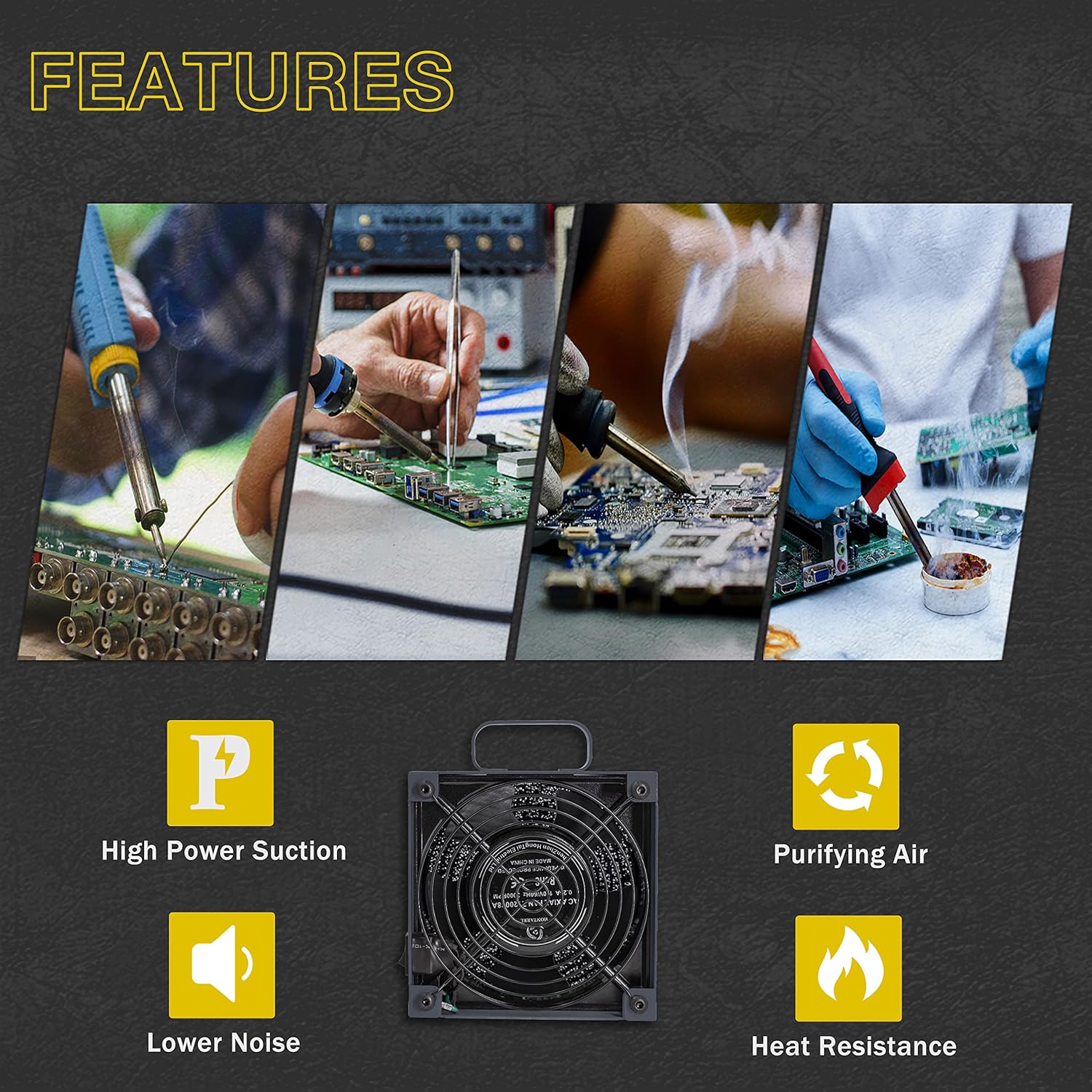 Equipped with a 0.4-inch thick activated carbon filter, this smoke absorber efficiently captures solder fumes, flux, chemical vapors, and gases—keeping your workspace safe and clean.