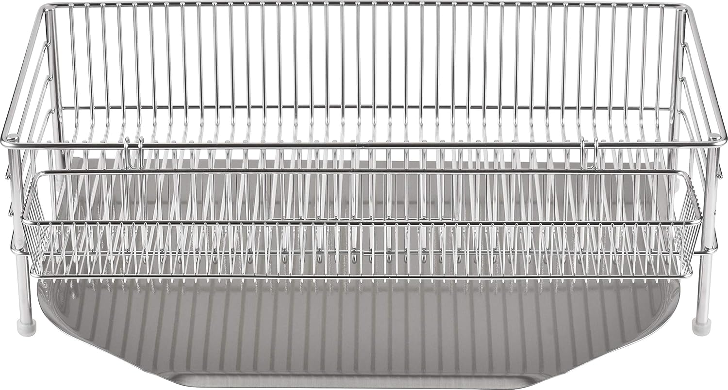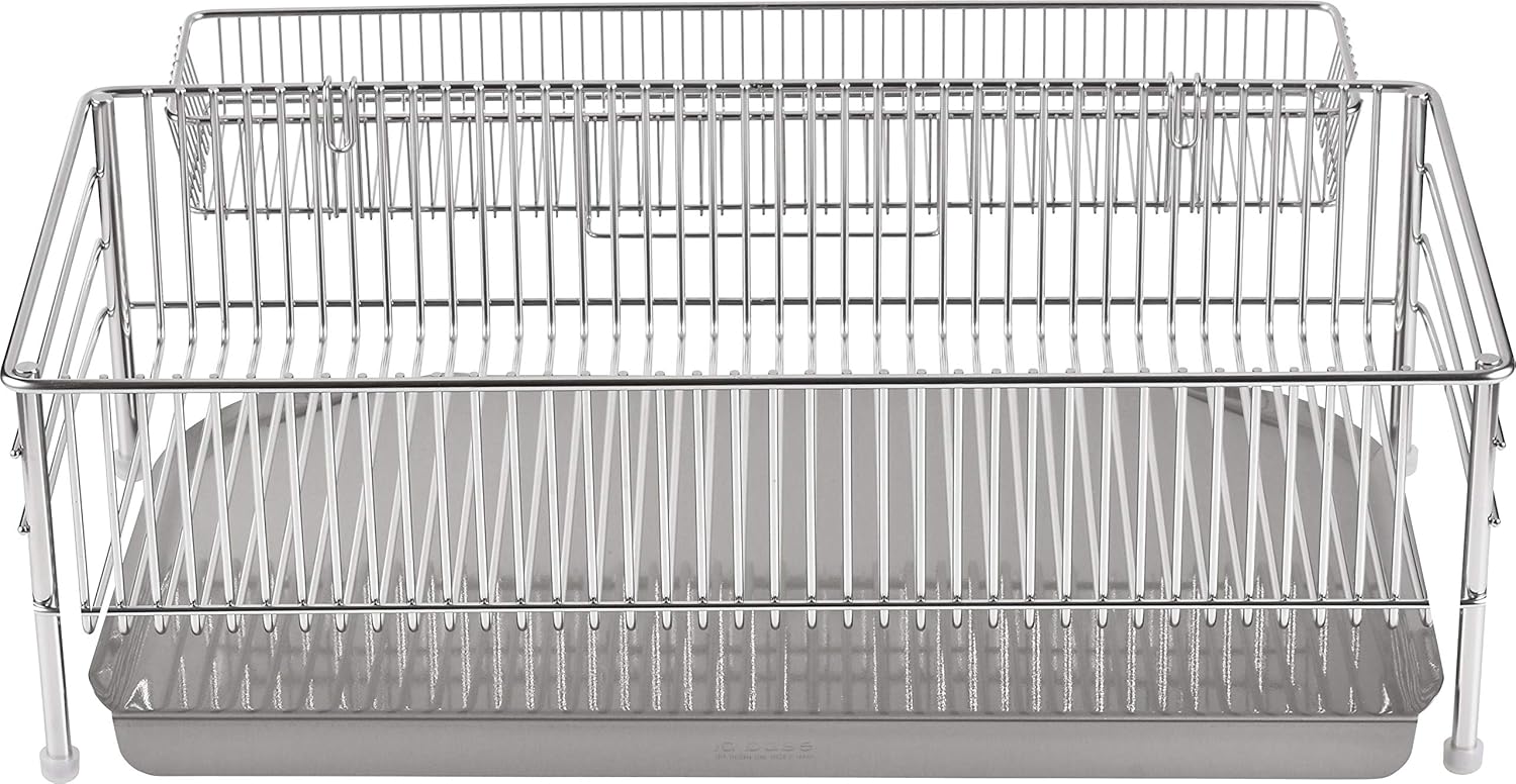 This compact, slim dish drainer set is the perfect space-saving solution for small kitchens. Made in Japan with premium 18-8 stainless steel, it combines durability, elegance, and practicality in one lightweight design.